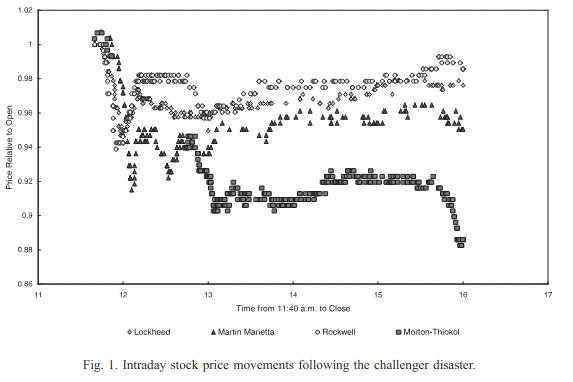 - In 1986 when the Challenger Space Shuttle exploded over Cape Canaveral, it took the government 4 months to identify Morton-Thiakol’s O-Rings as the root cause. The market had figured it out within 16 minutes.